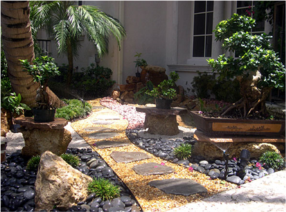 A number of plants which grow well in South Florida may be adapted for Oriental garden design. Careful selection of plants, ornaments and application of scale and proportion can successfully achieve the illusion of a Japanese garden, without the high maintenance.